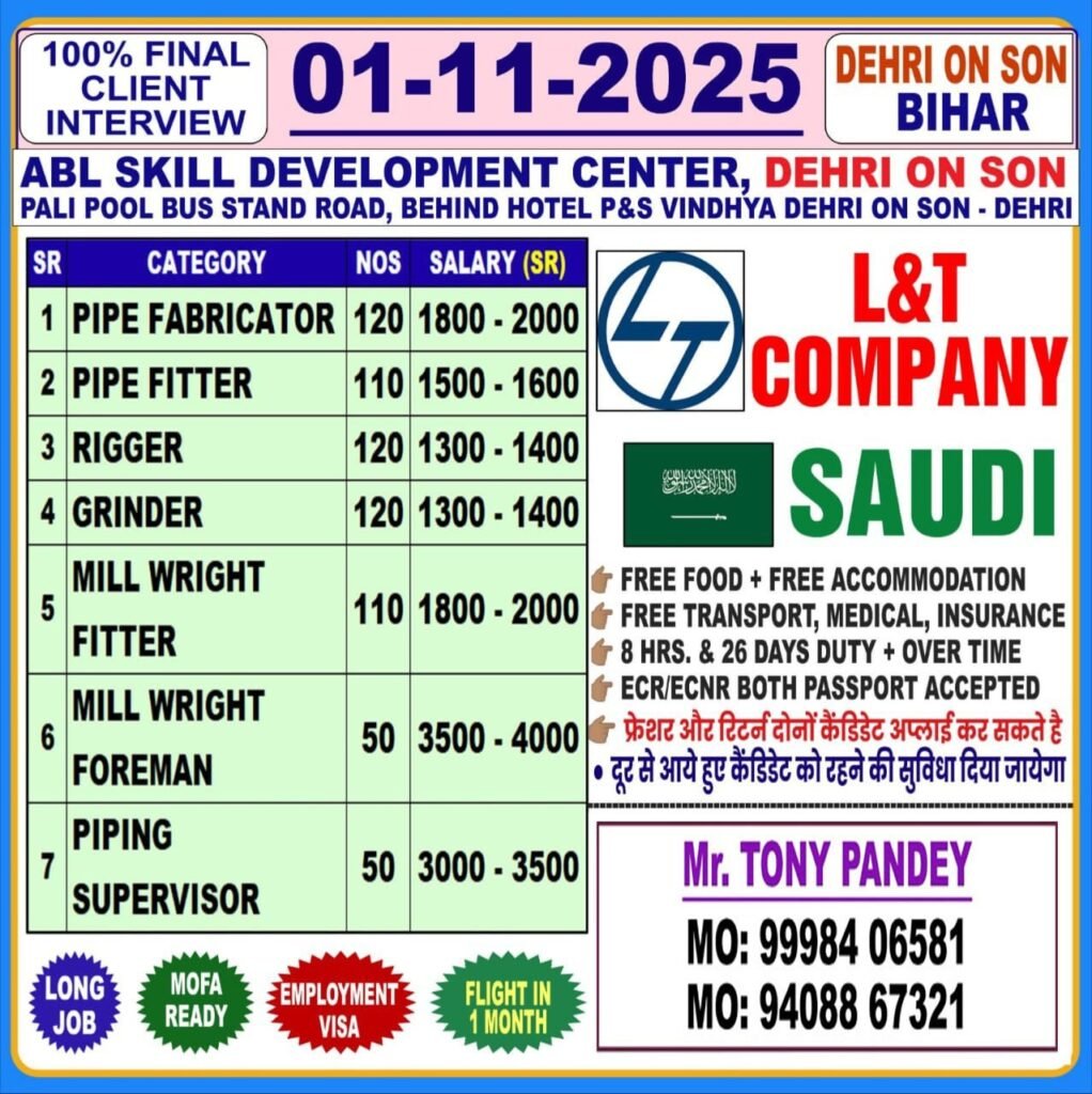 TAGGED: Job in Saudi Arabia with Salary l&T company required