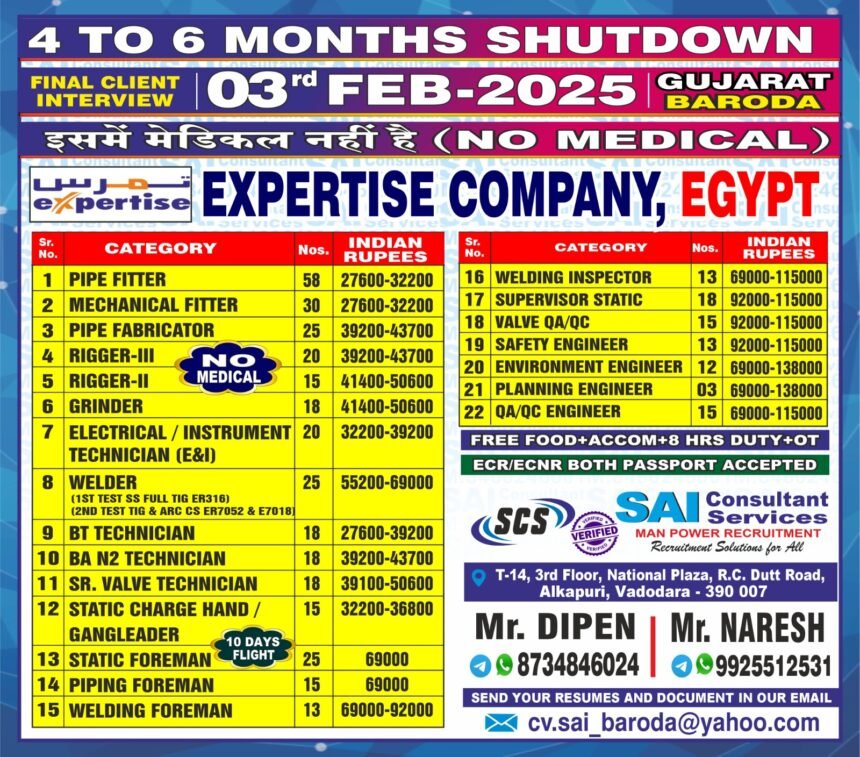 Shutdown Jobs in Egypt – 1350 Vacancies