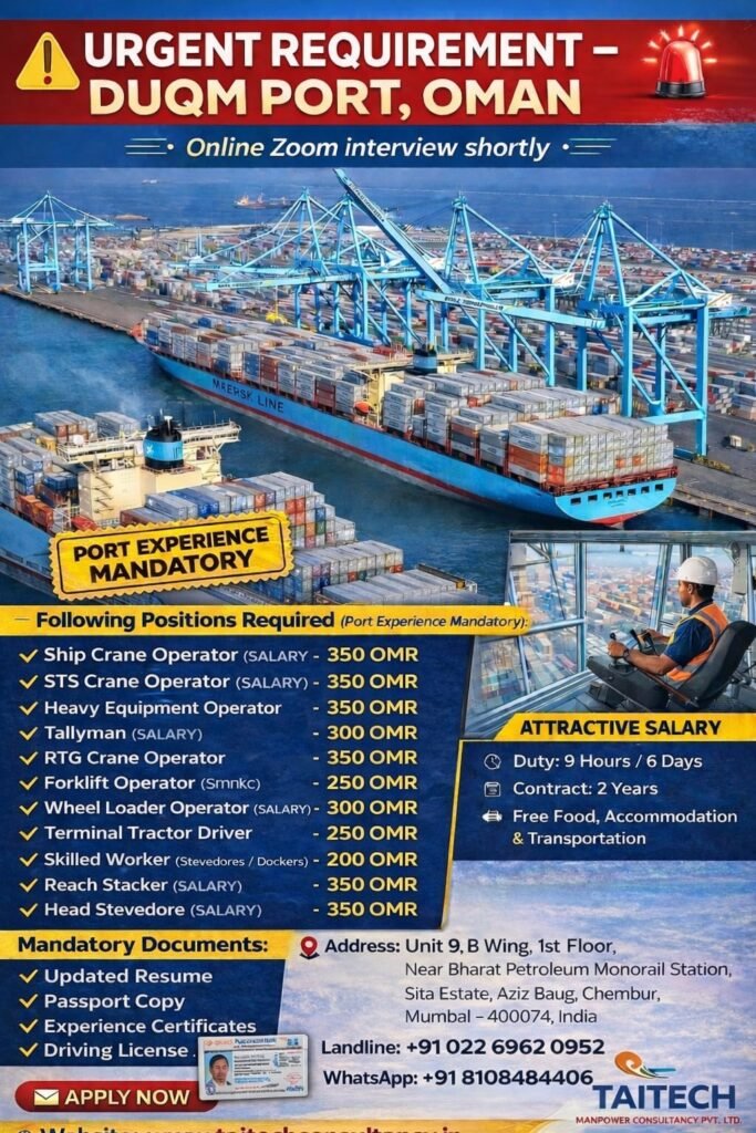 urgent requirement DUQM Port Job in Oman